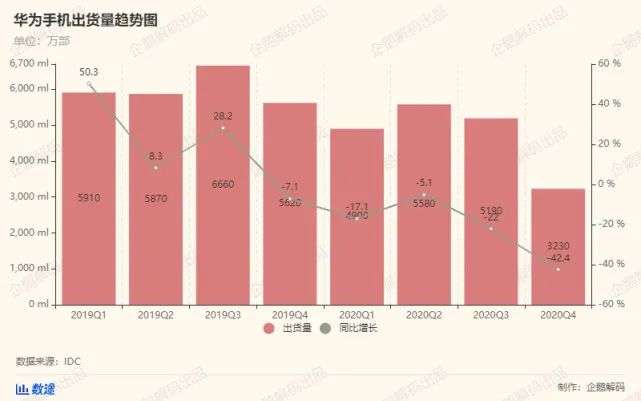 国内市场的反应相对来说有些滞后。一直到去年第四季度,华为手机才在中国市场的销量骤降,但IDC的数据显示,当时华为手机的出货量,依旧排名国内市场第一。