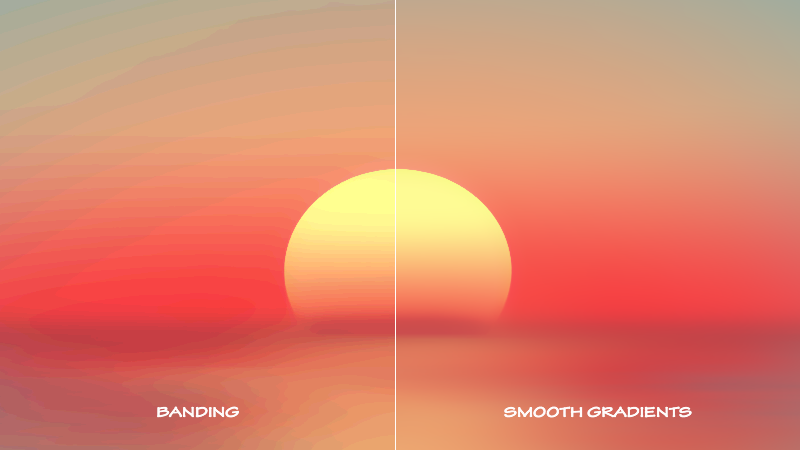 ▲颜色断层和平滑过渡的颜色对比. 图片来自:DELL