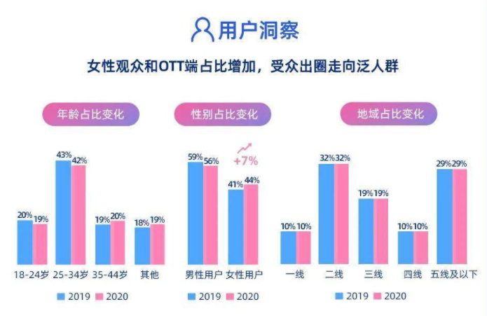 网络电影的受众毕竟以年轻用户为主,《2020腾讯视频年度指数报告》显示24岁以下用户占比达39.7%。而对青春题材接受度较高的女性观众,又是需要拓展的增量用户。