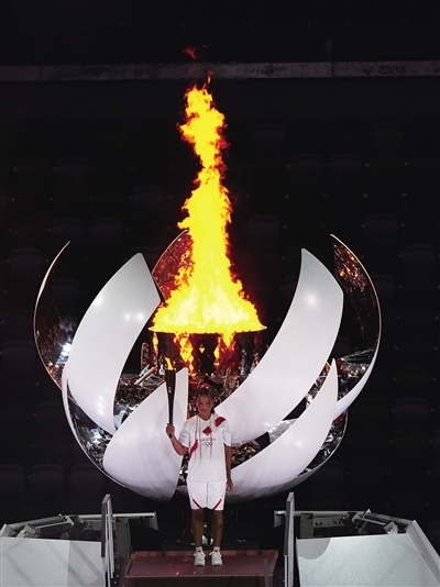 日本网球选手大坂直美作为主火炬手点燃了奥运史上首个氢燃料主火炬,它将在未来16天的会期内熊熊燃烧。