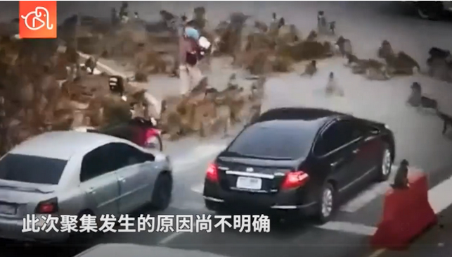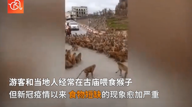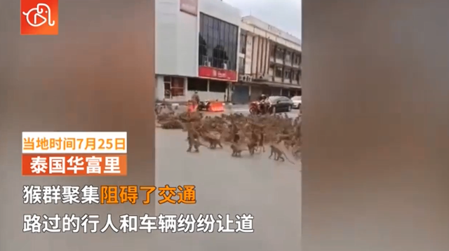 当地时间7月25日,泰国华富里两大群猴子聚集在一处交通路口,场面非常火爆。猴群聚集阻碍了交通,路过的行人和车辆纷纷让道。据泰国网报道,有“猴城”之称的泰国华富里府近年来猴子繁殖迅速,游客和当地人经常在古庙喂食猴子。但新冠疫情以来,食物短缺的现象愈加严重。此次聚集发生的原因尚不明确。