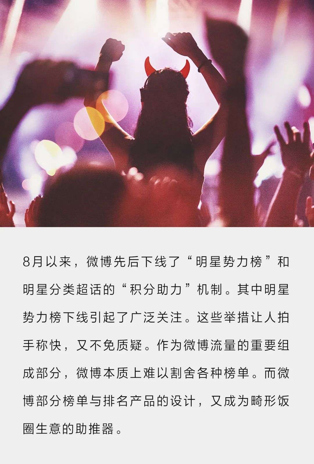 8月以来,微博先后下线了“明星势力榜”和明星分类超话的“积分助力”机制。其中明星势力榜下线引起了广泛关注。只不过,这些举措让人拍手称快,又不免质疑。