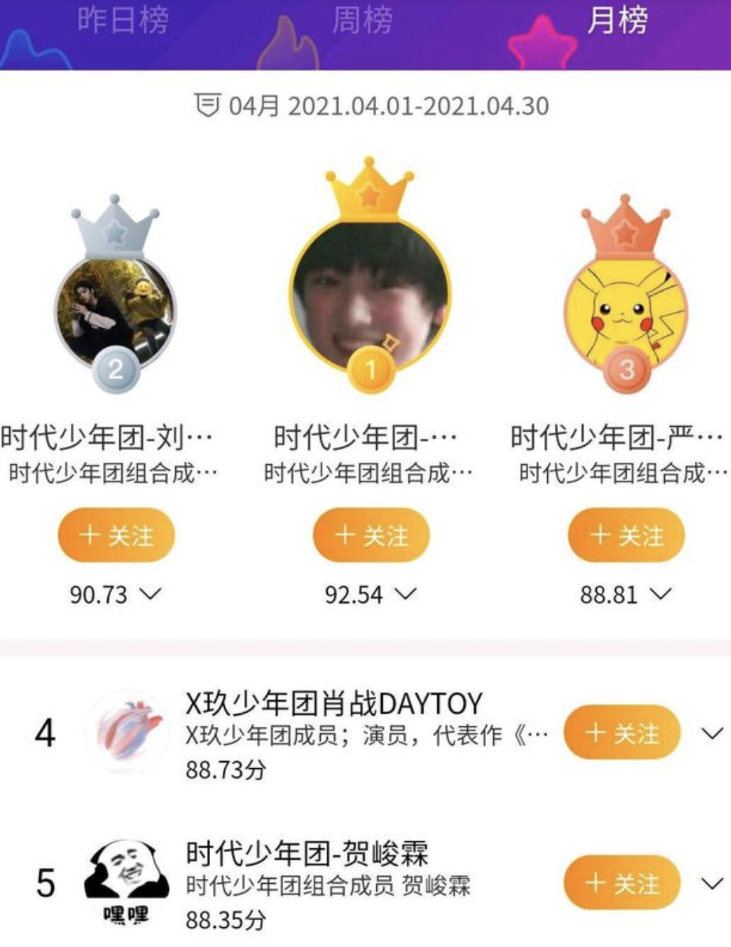 (明星势力榜截图。 来源: 网络)
