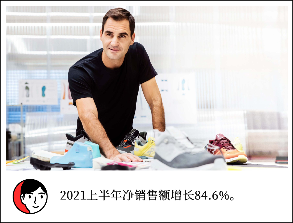 自2010年成立起,On昂跑的净销售额以85%的复合年增长率在增长,并在2020年达到4.253亿瑞士法郎;2021年上半年,On昂跑的净销售额为3.155亿瑞士法郎,同比增长84.6%。