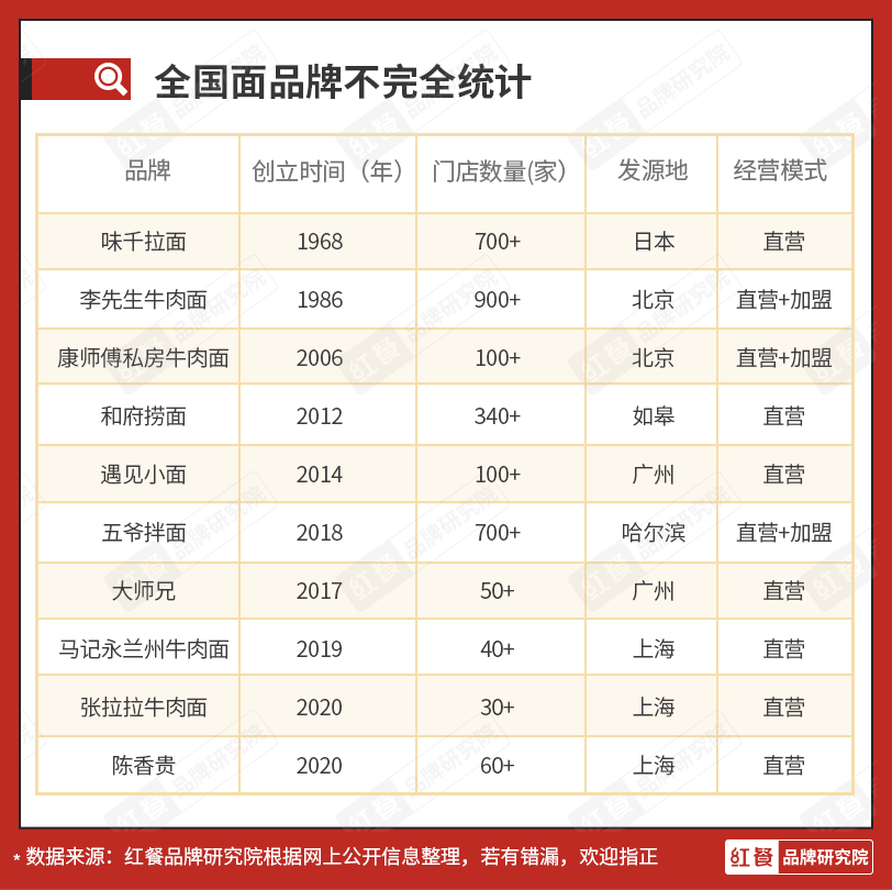 据红餐品牌研究院数据,全国面馆数保守估计在40万家左右,由此来看,整个面品类赛道不可谓不大。