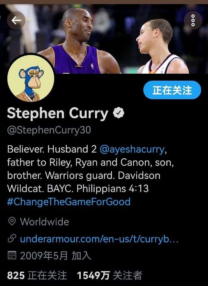 NBA明星球员,三度获得NBA总冠军、金州勇士队的控球后卫斯蒂芬·库里,用55 ETH(当时价值18万美元)买下了一个“猴子头像”。
