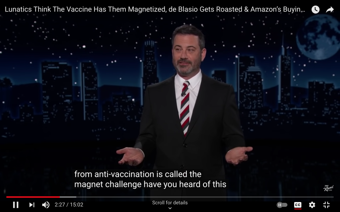 今年五月,吉米鸡毛秀就曾调侃过“磁性挑战” | Jimmy Kimmel Live