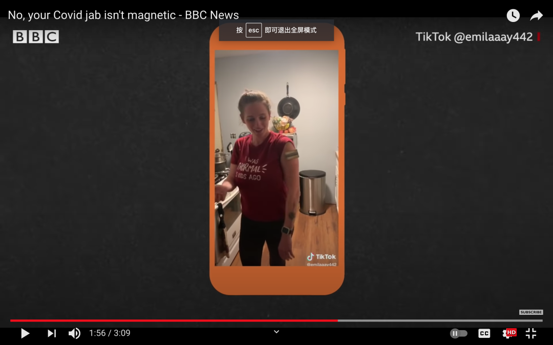 Emily 的视频是最早被疯转的疫苗磁性谣言之一 | TikTok 视频