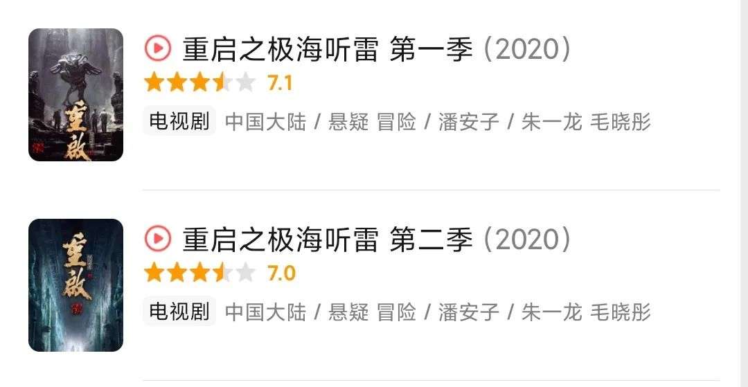 之后连续播出的《重启之极海听雷》《终极笔记》,前者由南派泛娱制作,仍延续了《盗笔》系列"高开低走" 、高流量主演的"传统",两季都在豆瓣7分左右;后者由爱奇艺出品,虽然口碑不错、粉丝认可度极高,但并未打出粉丝圈层,只是"稻米"们内部狂欢。