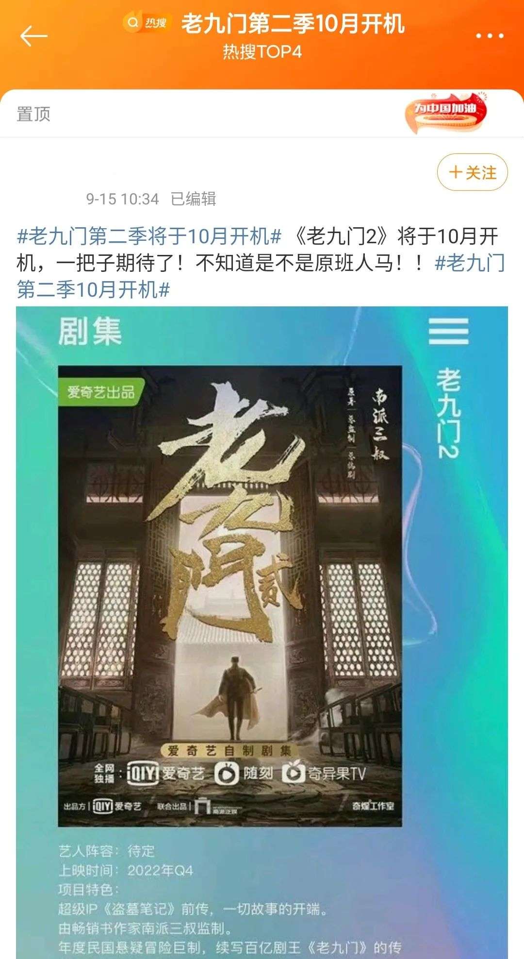 差不多同一时间,“老九门第二季10月开机”的热搜冲上热搜前列,《盗墓笔记》系列也再次备受关注。