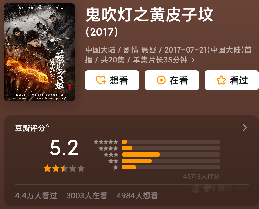 《鬼吹灯》系列网剧继《黄皮子坟》后再次迎来口碑低谷。