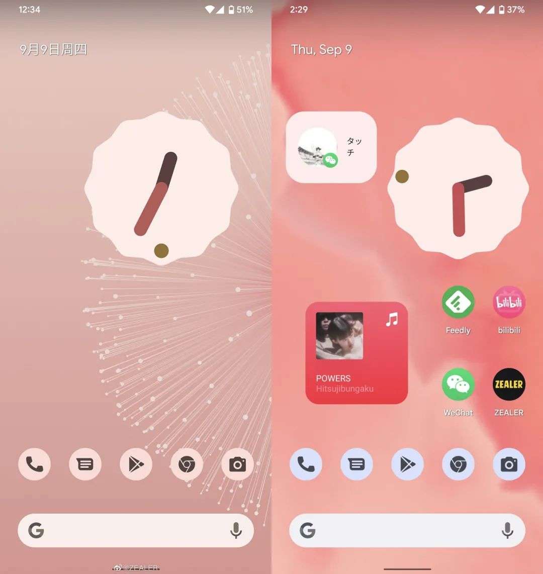 Android 12 的小组件会追随系统取色设置,自动从壁纸选取背景颜色,不再任由组件五颜六色。对于旧版的小组件,系统还会自动将其裁剪为圆角,形形色色,均与 Android 12 的系统风格相协调。