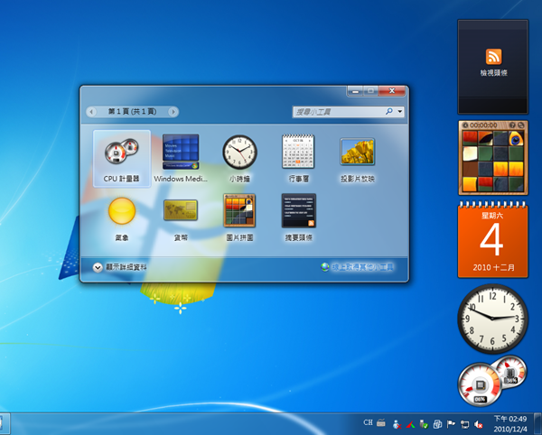 小组件在 Windows 7 得到发扬光大。这些桌面时钟与 CPU 小工具,Windows 7 的用户们一定还记得吧?