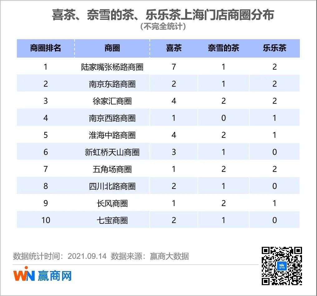 在消费最活跃的上海市场,乐乐茶与喜茶、奈雪的茶在多个商圈重合,包括知名度高的陆家嘴张杨路商圈、南京东路商圈、徐家汇商圈、南京西路商圈、淮海中路商圈等。