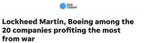 △《今日美国报》:洛克希德·马丁、波音等20家公司从战争中获利最多。