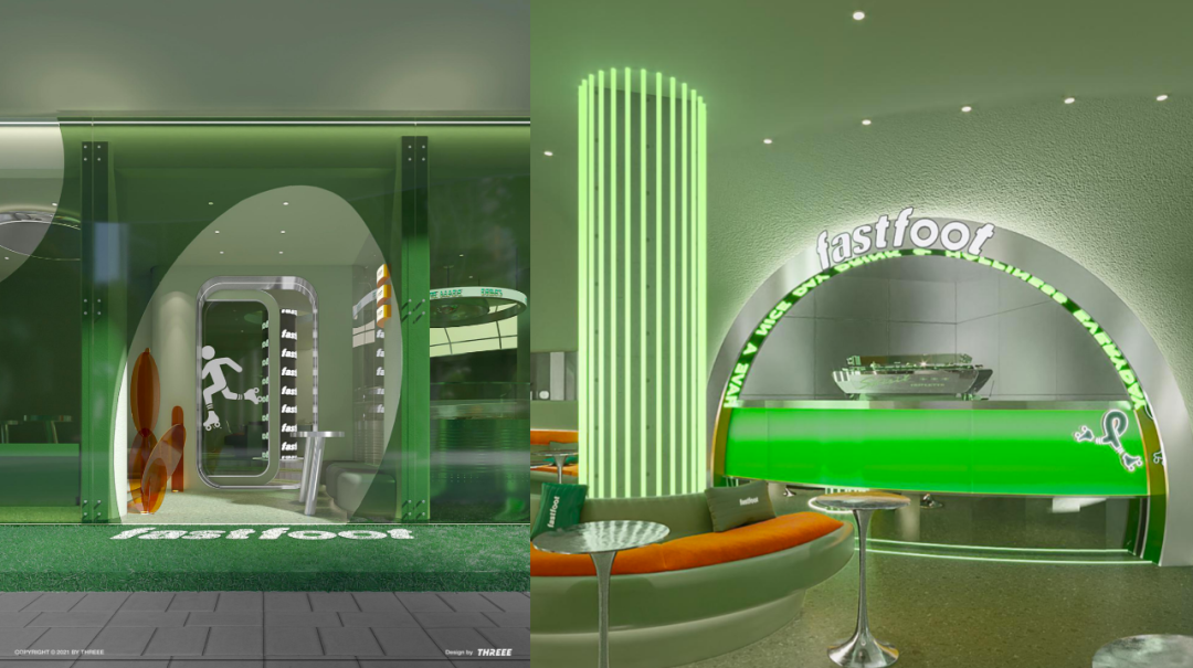 单一个绿色,就有很多不同的变调,比如橄榄绿、邮差绿、荧光绿等等,不同店还会使用不同主题,对应不同的绿色。急急脚主理人 Toe 告诉爱范儿,这能让消费者保持新鲜感。