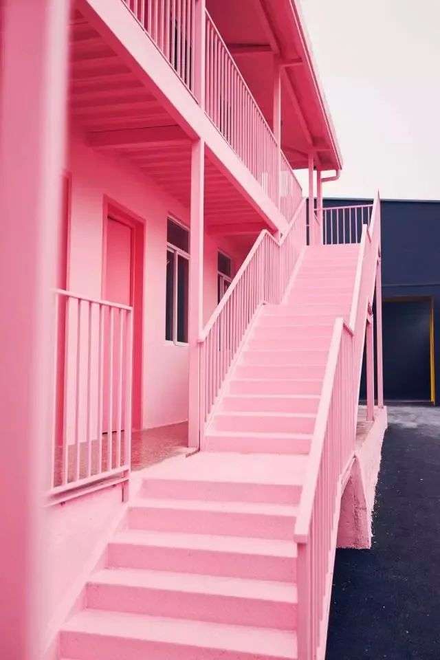 这家 2017 年创立的艺术园区,最开始就是因为全粉色系的建筑而知名,让人想起《布达佩斯大饭店》里整栋粉色的时髦酒店。
