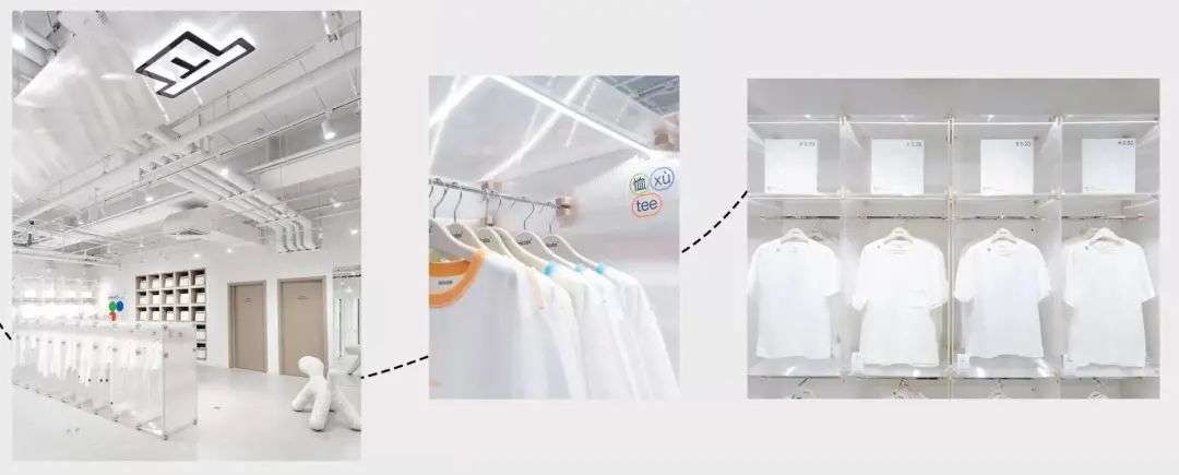 2018 年开业的 delicates 店内分为「白 T 档案馆、定制体验区等,传达的也是一种年轻现代的生活方式