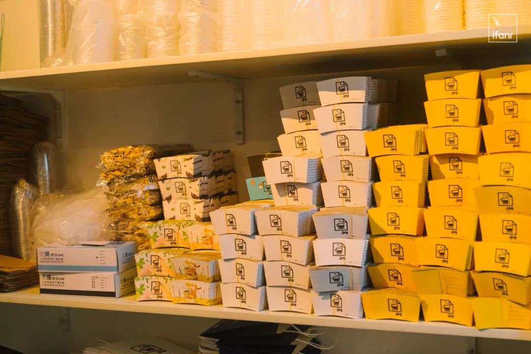 在他们店内的角落,已经可以看到不同颜色的杯套和包装袋。