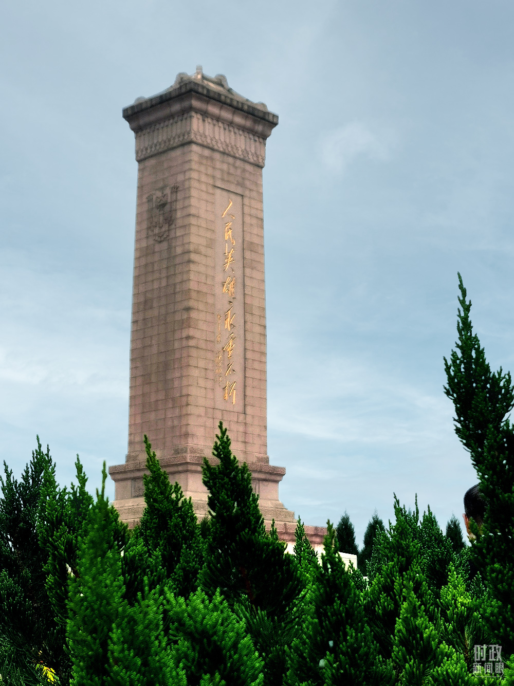 △映衬在一片苍翠之中的人民英雄纪念碑。(总台央视记者关舟拍摄)