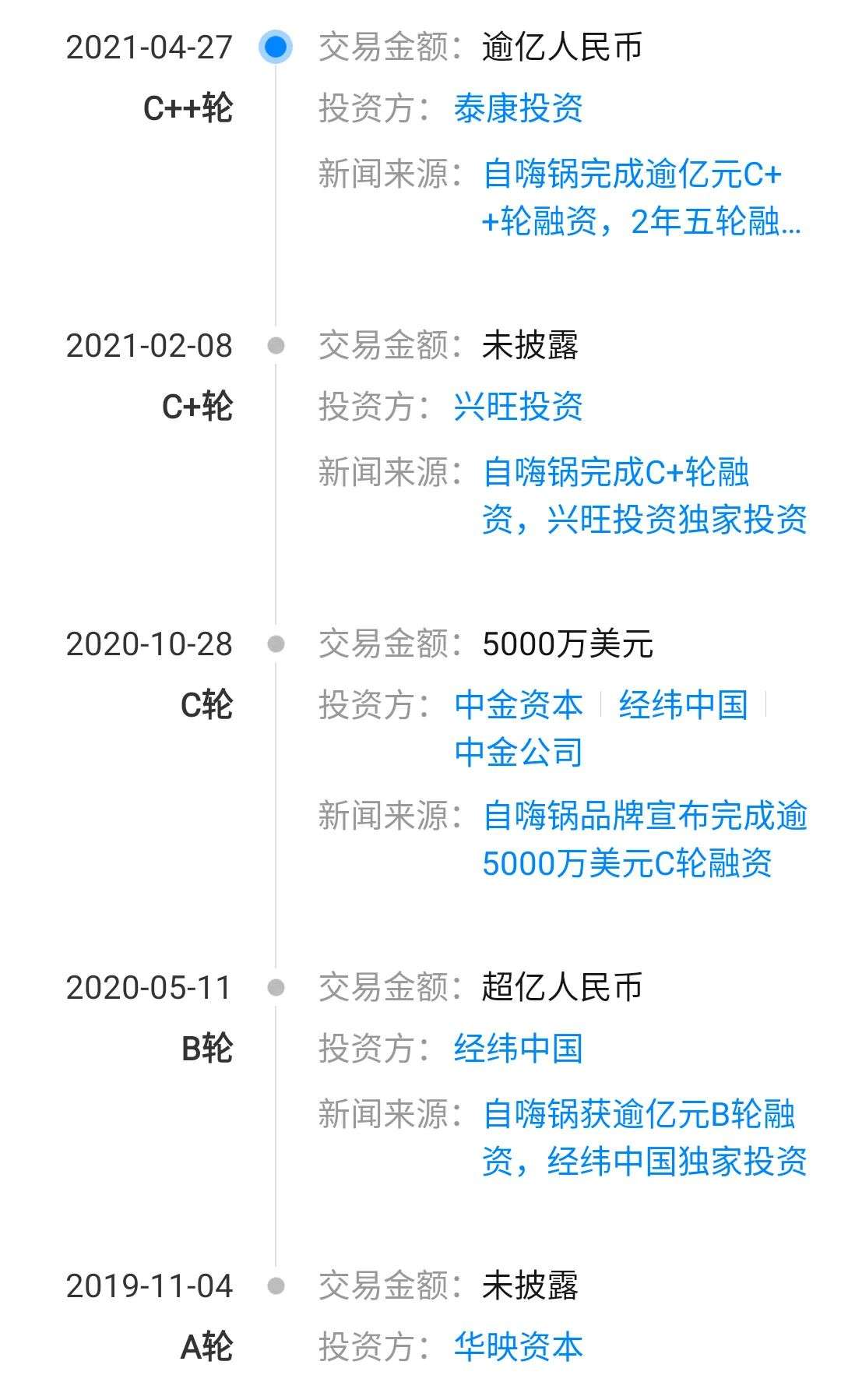 资本也看好这一赛道。天眼查数据显示,2020年5月,半个月内,就有食族人、自嗨锅、莫小仙等多个品牌获得机构投资。其中,自嗨锅成立仅三年多,就已经完成了五轮融资,投资方包括经纬中国、中金公司等知名机构,融资金额累计数亿元人民币。