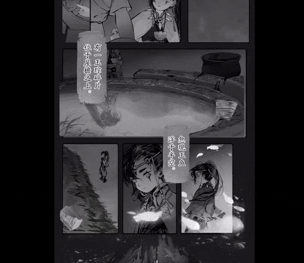 国内团队制作的《良渚》,是一部直接在漫画页面进行操作的互动作品。通过拖动漫画中的物体、置换对话框文字等形式,玩家就能改变故事走向、达成不同结局,精美的水墨画风也让人印象深刻。但至今未正式上线。