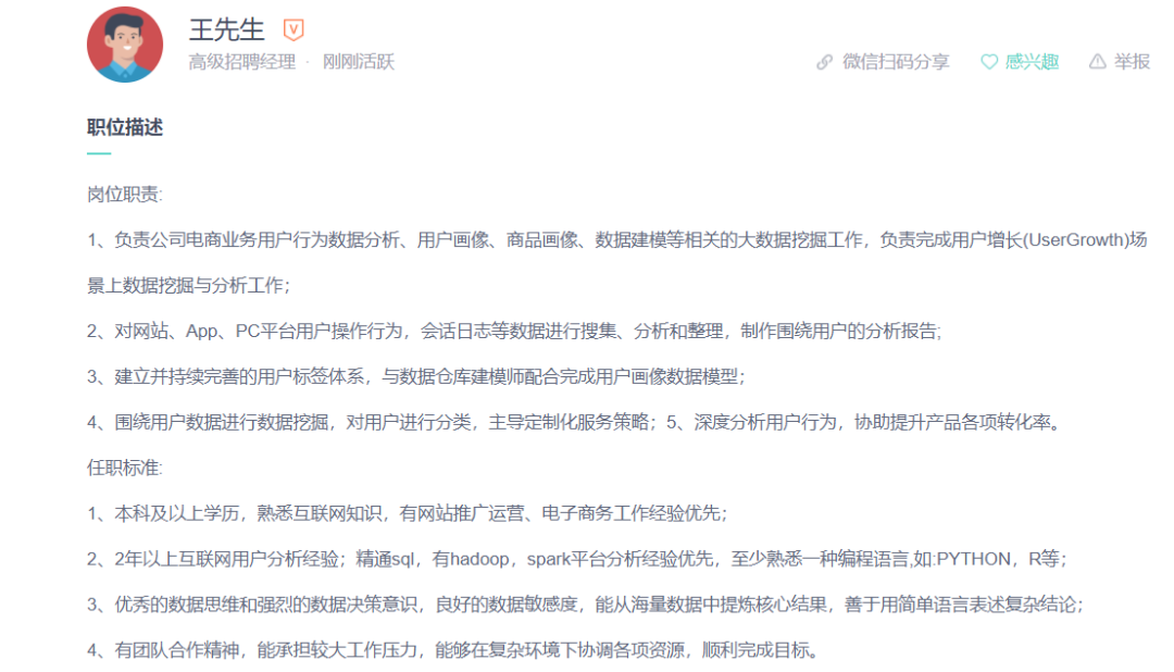 全球快时尚服装品牌心潮无限在某招聘网站招募“数据分析师”