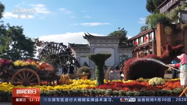 在云南,丽江古城处处可见中国红。这里的菊花能够持续整个10月,此时正值菊花的盛花期,当地布置了什锦菊、悬崖菊、球形菊等35000多盆各品种菊花,又设置了71个大型的菊花立体造型,展现古城之美。