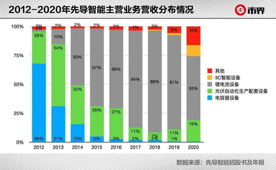 到这时,先导智能已经在全球范围内成为了电容器卷绕机领域的领先玩家。随后多年间,先导智能曾在锂电设备领域有所尝试,还曾在2012年重押布局锂电设备,但仍始终是以电容器设备为“大本营”。