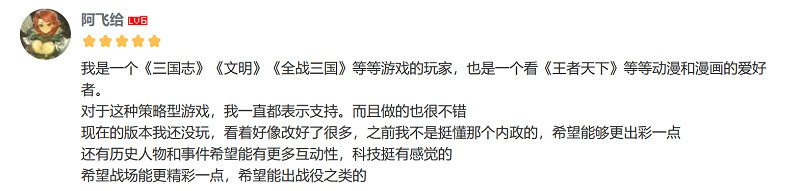 除了历史策略类游戏常见的基础玩法之外,军心、腐化、民心、名臣、随机事件等设定的加入更丰富了游戏的内涵层次,可以说《无悔华夏》不仅是一款只面向宏观的历史题材游戏,也是一款深入体验君主人生的“人情味”产品。