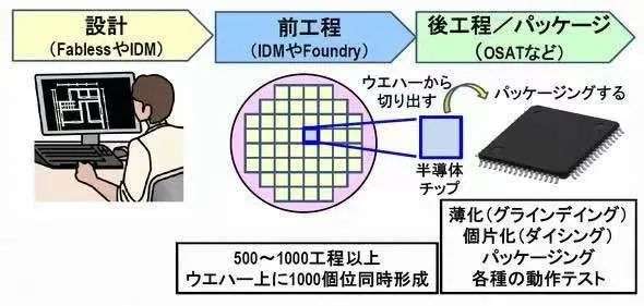 在TSMC赴日新建的工厂中预计生产的逻辑半导体究竟是如何制造出来的呢(如下图2 )。简单来讲,通过设计、前段工序、后段工序来实现半导体生产。