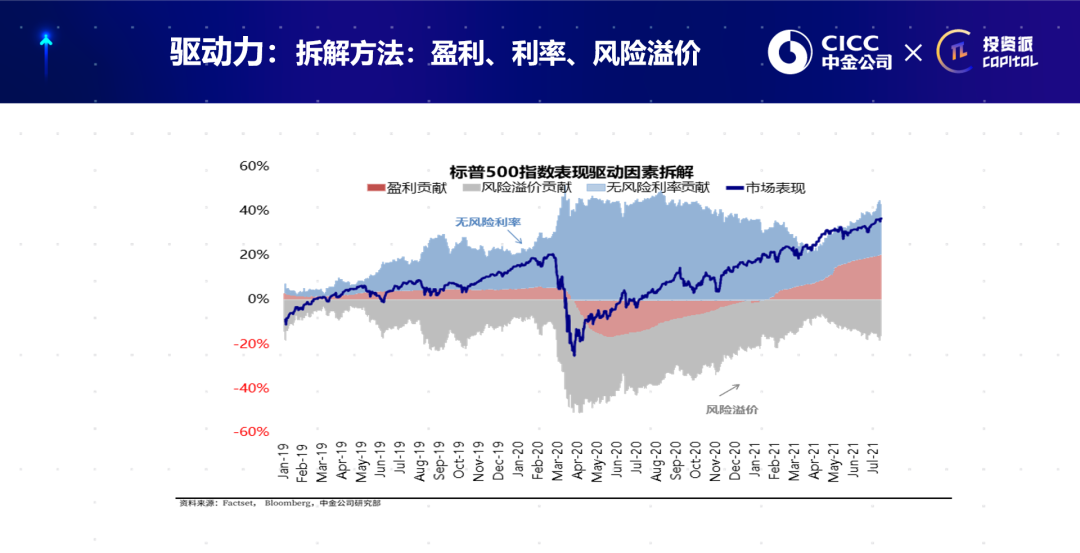 我们有一个拆解的方法,这是我们自己构建的一个模型,分解成这几个因素,盈利、利率、风险溢价,那么这几个因素为什么要拆解它?
