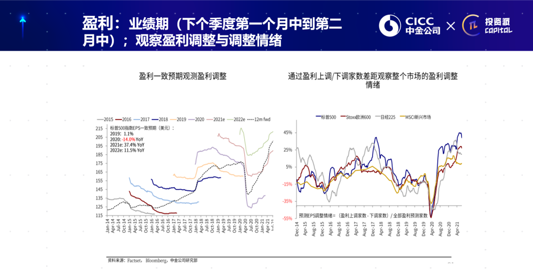 但是在美股我们经常更多关注的是这个东西,盈利预测。盈利预测就是市场整体一致预期的预测以及盈利调整情绪,这个可能对于市场的变化更加敏感一些。
