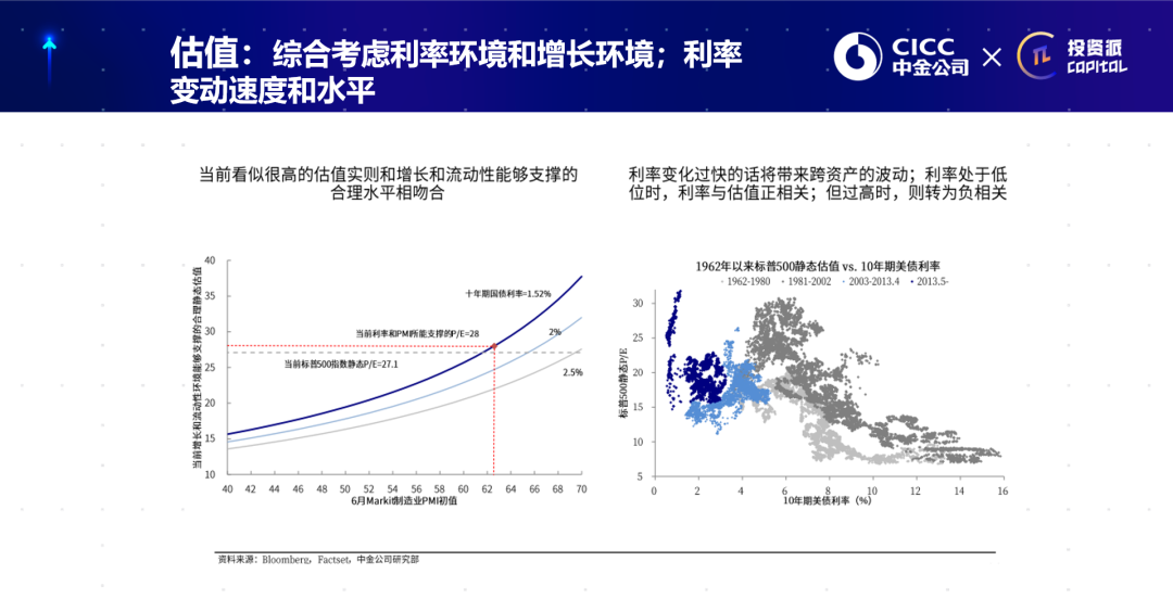 如果我们再动态的把刚才的我三个因素的拆解,合成一个模型,我们就可以看到其实当前的估值水平,它是当前的增长和流动性环境可以支撑的一个水平,而不是单纯地偏高。