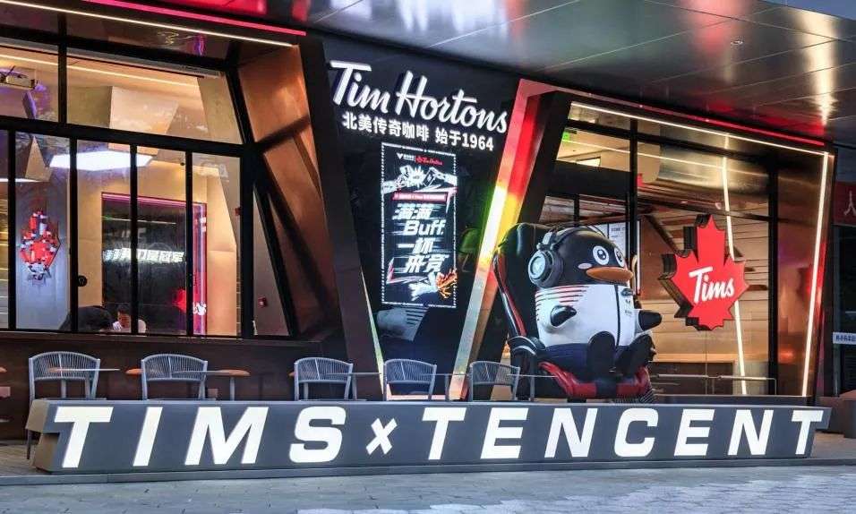 去年11月,Tims咖啡联手腾讯电竞打造的国内首家电竞主题店开业,打造具有强社交属性的“电竞+咖啡”生活新场景: