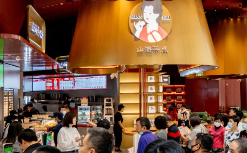 跨越700年的时间线“宋朝茶点-老上海阿姨奶茶-21世纪烘焙”,“中式茶点×中式茶饮×西式烘焙”的全新组合,加上当下大受欢迎的国潮风格设计,令人耳目一新,吸引消费者纷纷前往打卡,每天爆排3小时。