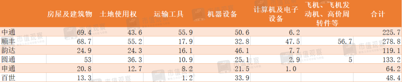 其次,看物流供应链基础,即固定资产。这既是对高毛利率的保证,也同样是快递公司扩大业务量、抢占份市场额的关键。 目前来看,中通、顺丰属于第一梯队,韵达、圆通属于第二梯队,申通、百事属于第三梯队。