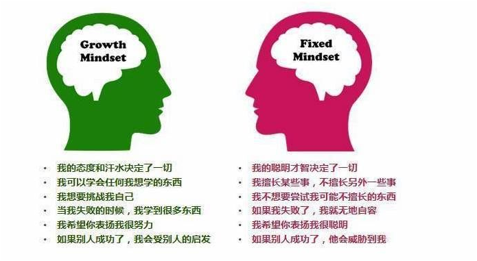 这些不同的思维方式就像是生活在两个世界的人,形成了自己对成功,努力,改变,失败的看法,导致他们对自身的认识,对挑战的态度,对挫折的复原力都大不相同。