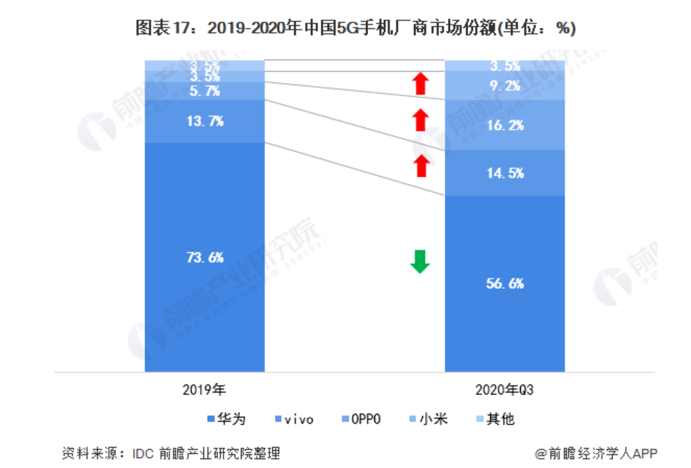 数据显示,去年国内5G手机出货量1820万部,占比68.4%,但华为以73.6%的市占率牢牢统治着5G手机市场,OPPO的市占率则仅有16.2%。OPPO在5G手机的研发、销售这方面,都还有很大进步空间。