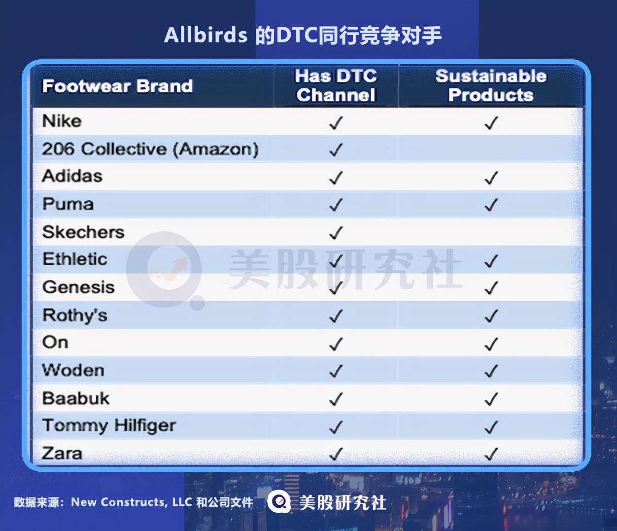 Allbirds期望通过垂直零售分销战略(DTC经营模式)来与竞争对手进行区分,以其创新产品SweetFoam鞋底和羊毛材料显示其优势。但在鞋类市场,目前许多公司也采用DTC相关模式来经营,而在支持全球可持续性发展的未来,Allbirds也决定向行业提供其独特SweetFoam技术。