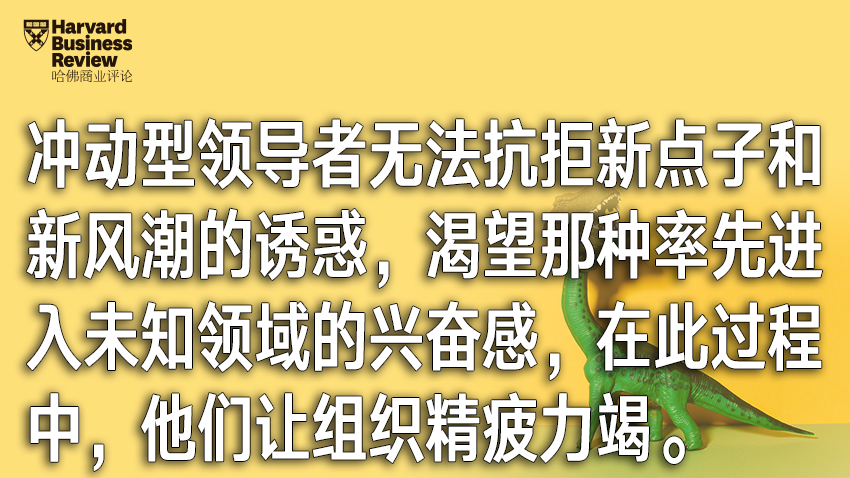 我们都见过有“新奇事物综合症”的领导者。这类领导者无法抗拒新点子和新风潮的诱惑,渴望那种率先进入未知领域的兴奋。在此过程中,他们让组织精疲力竭,超量挥霍资源,对客户和股东过度承诺。他们会用浮夸的宣言将员工卷入热情的漩涡。但人们一旦看穿他们下星期就会去追逐新创意的秉性,这种热情就会迅速熄灭。他们无法对某一个重点保持长期关注。