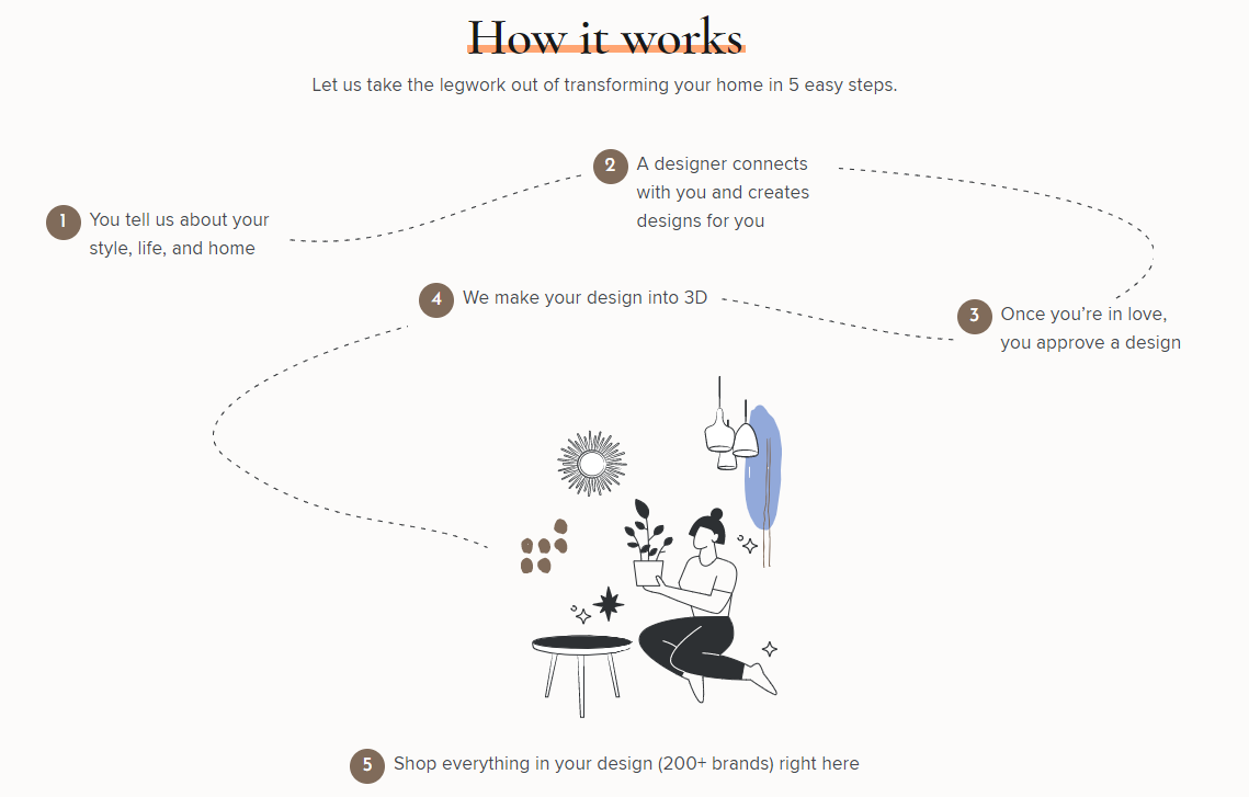 室内设计作为家具零售的上游,天然具备良好的带货属性,所见即所得,可极大提升家具的购买转化率。但美国的室内设计市场老旧,仍旧以线下分散的设计工作室提供一对一人工服务为主要模式。设计周期长,定价高昂,设计方案无直接对应的家具产品,无法立体化地呈现设计与产品的搭配效果,诸多因素综合导致从设计到家具产品的购买转化链条并不通顺。