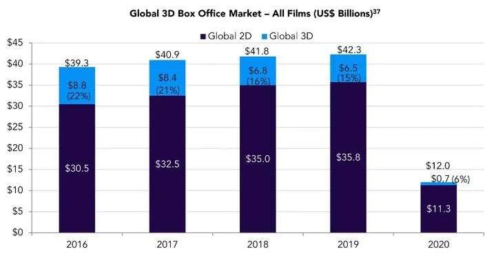 而纵观全球电影市场,3D 电影也开始出现增长乏力的迹象,反而 2D 电影市场开始回春,两者的票房差正逐渐缩小。