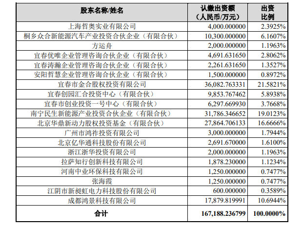 具体来看,持股21.58%的宜春市金合股权投资有限公司是第一大股东,其背后是宜春市政府;南宁市主导的南宁民生新能源产业投资合伙企业持有19.01%的股份;第三大股东则是持股16.67%的北京华鼎新动力股权投资基金,背后是四川省政府和南宁市政府。