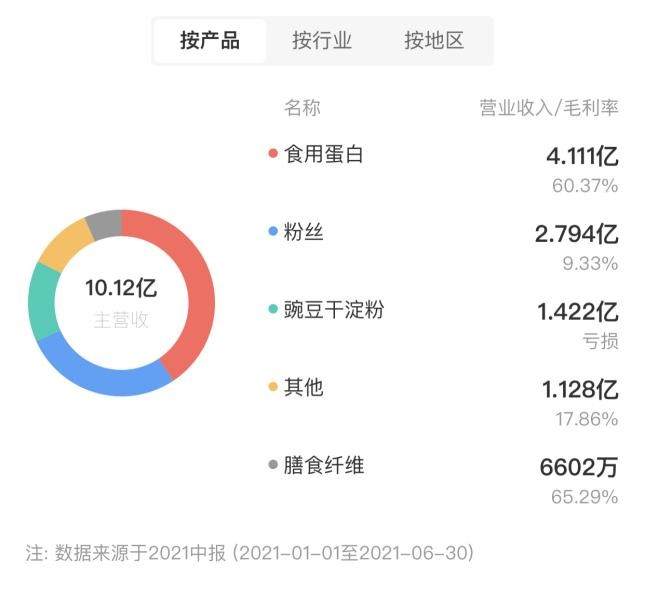 双塔食品是一家根植于山东的食品企业,主营产品是龙口粉丝和豌豆蛋白,其产品遍及全国并行销海外。在粉丝生产这一细分领域,双塔食品以约20%的市场占有率稳居龙头。随着豌豆蛋白后来居上,在2021年上半年,公司的豌豆蛋白收入占比约41%,超过粉丝业务约28%的占比,成为公司第一大业务。
