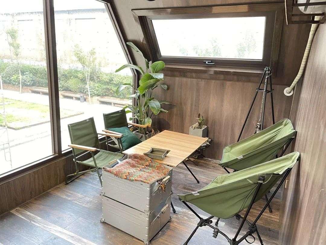 这类半户外形式店更适合市区内的咖啡馆,不需要大面积的空地,就可以营造露营氛围,增加顾客的消费体验。