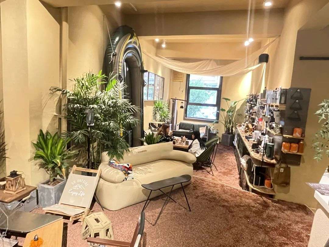 店内座椅、帐篷都选择了较为昂贵舒适的户外品牌,消费者可以坐在店内任一角落,一坐半天,感受舒适与放松。