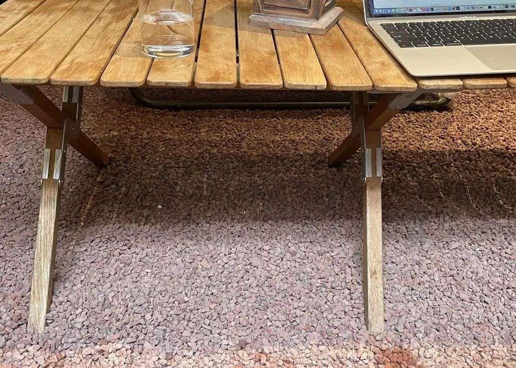 店内随处可见的露营装备,地上铺满碎石,走起路嘎吱嘎吱响,室外露营的体验感十分强烈。