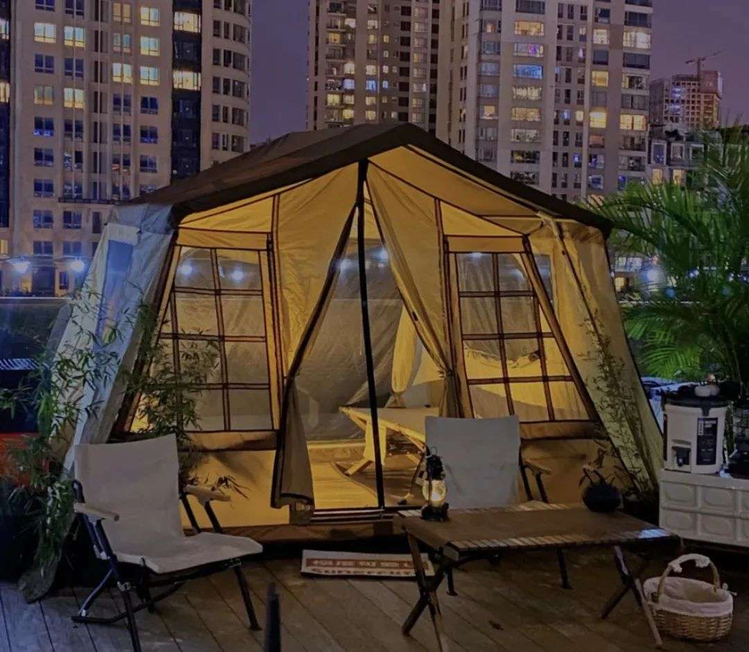 对于很多年轻消费者来说,露营风的咖啡馆简直是“打卡界的金字塔”: 帐篷、绿植、篝火,配上一杯咖啡,可以360度无死角拍照,天生自带高出图率。