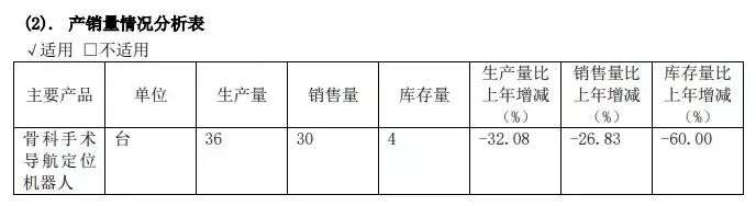 特别是2020年受疫情影响,医院采购医疗器械需求降低,导致天智航主营产品——天玑骨科机器人(天玑1.0)销量下滑明显,仅销售了30台,同比减少 26.83 %。